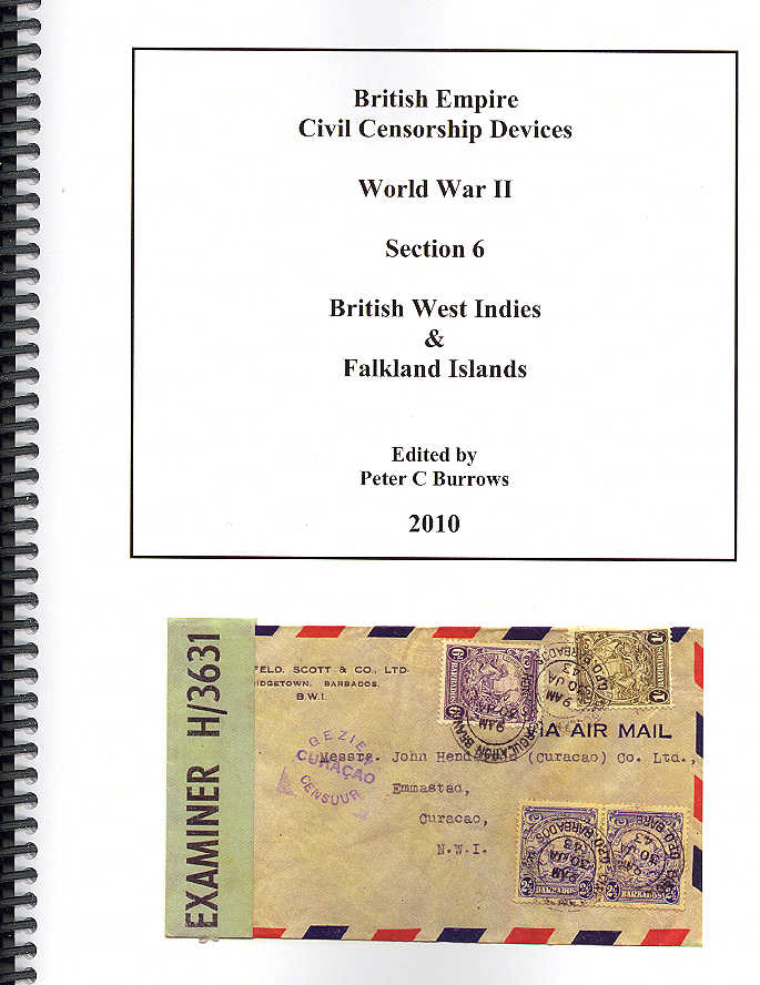 British Empire Civil Censorship Devices, World War II, Trinidad and Tobago by Wike Development and organization of the censor stations, the markings, labels, seals, permits, instructional markings and security devices, also covers censor numbers allocated to Jamaica and Bermuda. 1994, 80 pages, card, UK £15.00, $30.00