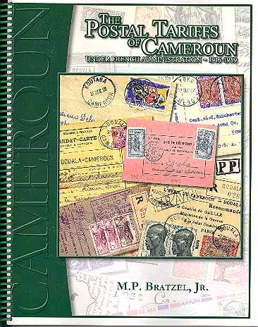 All aspects of postal tariffs of the Cameroun under French administration. This is the most complete and best documented postal rate work that we know of; numerous rates are given along with other services such as money orders, C.O.D., postal cheques, reply coupons, debt collection, insurance, etc. Many covers are illustrated. 2007, 215+6 pages, searchable CD in pdf format having over 500 pages on the tariffs, spiral wire binding, $95.00