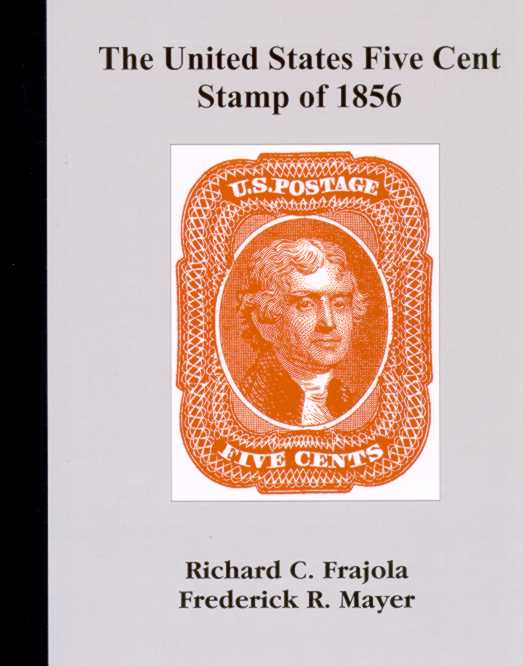 The United States Five Cent Stamp of 1856 by Richard C. Frajola and Frederick R. Mayer, A major new work on a classic for both the stamp and postal history collector. The book covers the stamp production, distribution, domestic and foreign usages, etc. from the Collectors Club of New York. The first book from the CCNY in over 10 years, 2005, 176 pages, in full color, cloth, $45.00