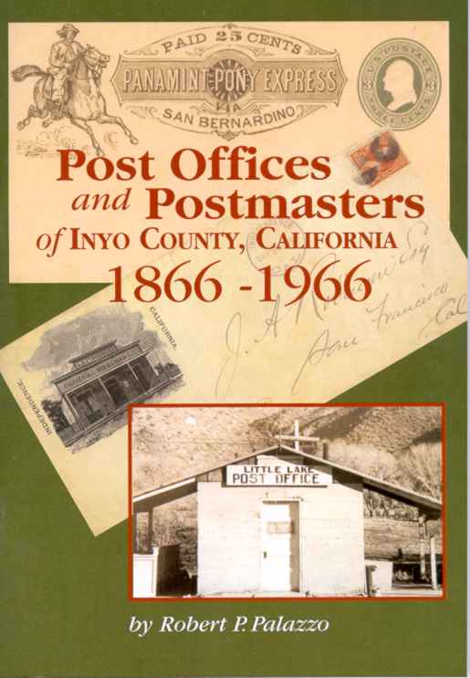 California, Post Offices and Postmasters of Inyo County, California 1866-1966 by Robert P. Palazzo. Well written and produced, showing maps, covers, old pictures, etc., 2005, 54 pages, card, $10.95